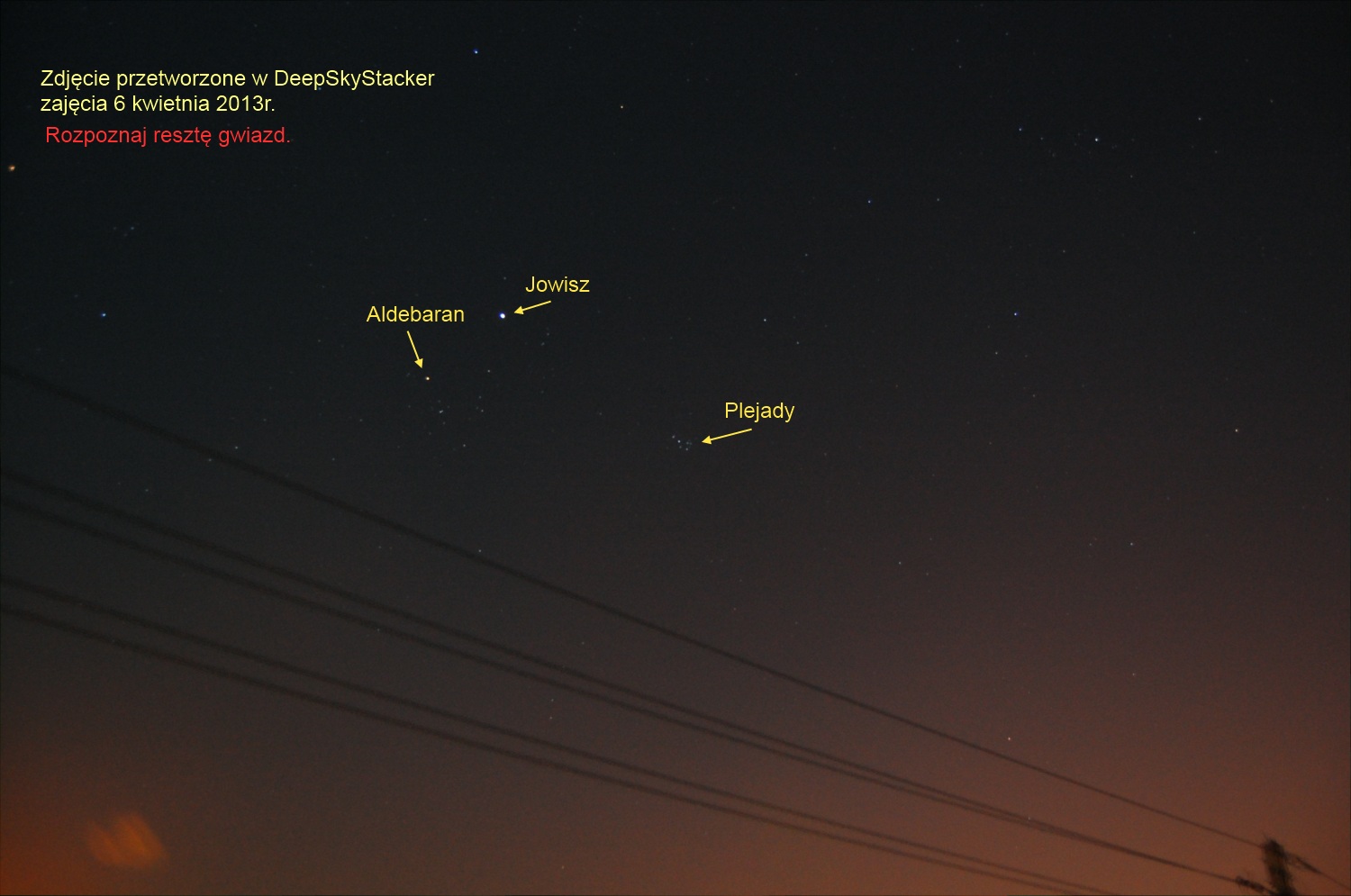 Zdjęcie gwiazdozbioru Byka z Jowiszem - obrabiane na zajęciach 6 kwietnia 2013r.Spotkania sekcji astronomicznej z dnia 6 kwietnia 2013r.