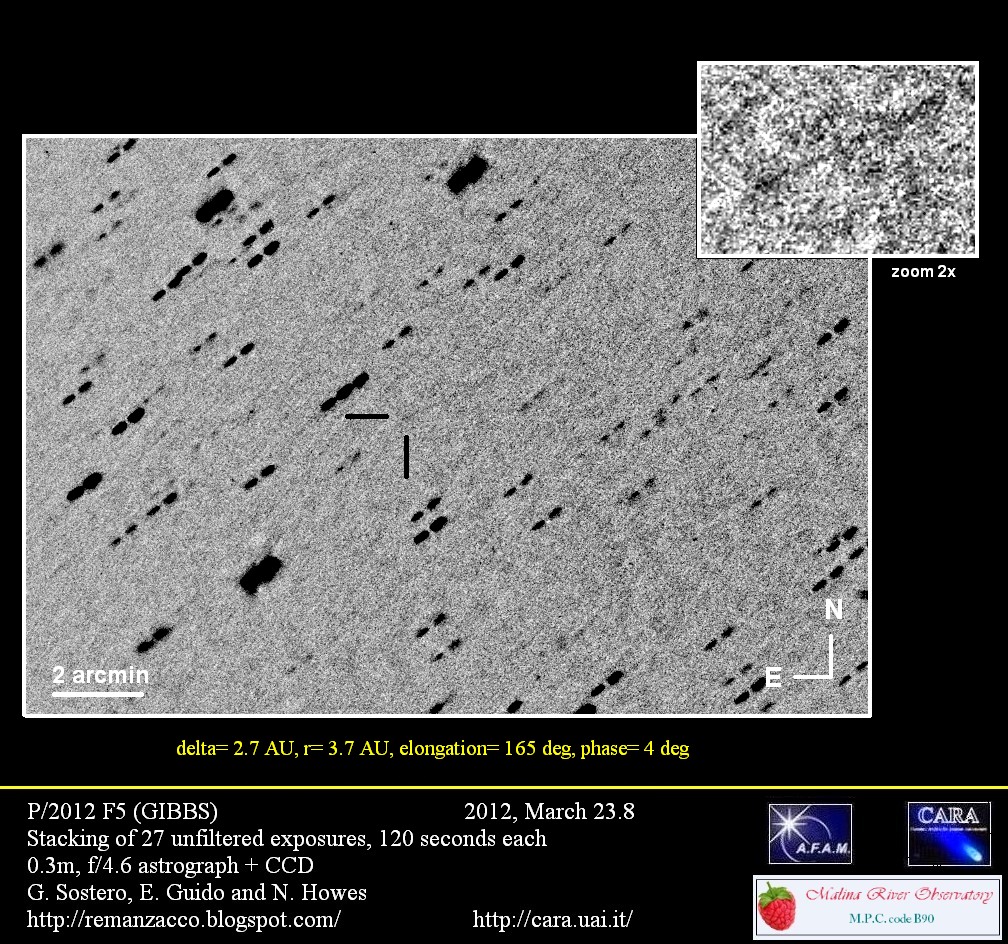 Po dogłębnej analizie danych hiszpańscy astronomowie doszli do wniosku, że P/2012 F5 a jest planetoidą, a ogon powstał wskutek dość niecodziennego wydarzenia. Astronomowie doszli także do wniosku, że do powstania ogona tej planetoidy doszło około 1 lipca 2011 roku (plus minus 20 dni).