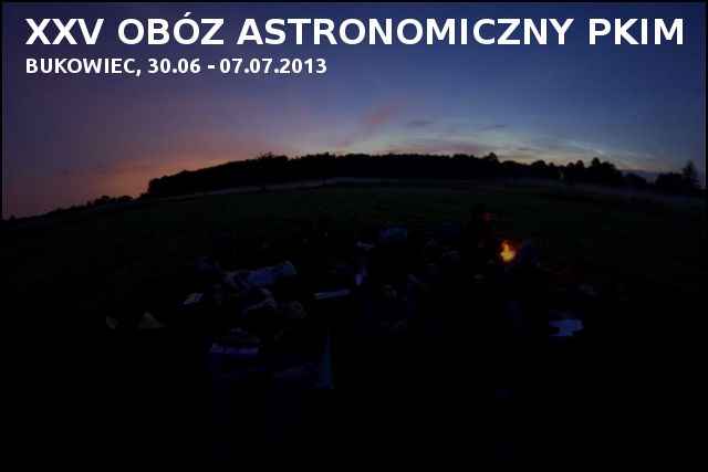 Zapraszamy wszystkich zainteresowanych tematyką meteorową na XXV Obóz Astronomiczny PKiM który odbędzie się w dniach od 30.06.2013 do 07.07.2013 w Bukowcu. Będzie to obóz szkoleniowy przeznaczony dla początkujących obserwatorów. Krótkie noce i stosunkowo niewielka aktywność meteorowa pozwolą na dogłębną analizę pierwszych obserwacji. Tematyką zajęć na obozie będą nocne szkolenia w obserwacjach wizualnych, wstęp do prostej analizy danych obserwacyjnych jak też wstęp do fotograficznych obserwacji meteorów i do analizy video z użyciem przeznaczonego do tego oprogramowania. Przewidziane są też radiowe obserwacje meteorów.