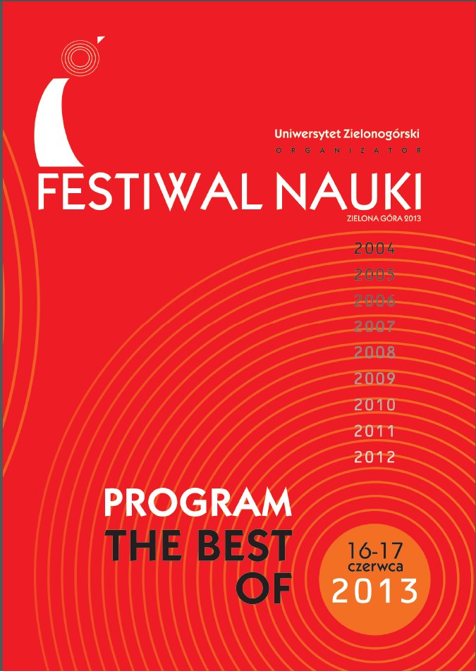 Festiwal NaukiW dniach 16 i 17 czerwca br. Uniwersytet Zielonogórski już po raz dziesiąty organizuje Festiwal Nauki. Ten mały jubileusz wydaje się dobrą okazją aby przypomnieć miłośnikom tej imprezy, których nigdy nie brakowało i jesteśmy przekonani, że nie braknie również w tym roku, nasze najlepsze prezentacje w nowych aranżacjach. Zapraszamy więc mieszkańców Zielonej Góry i Regionu do licznego uczestnictwa w tegorocznym festiwalu przebiegającym pod hasłem
