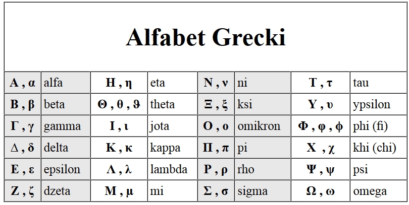 - Alfabet grecki – oznaczenia gwiazd na mapach.
