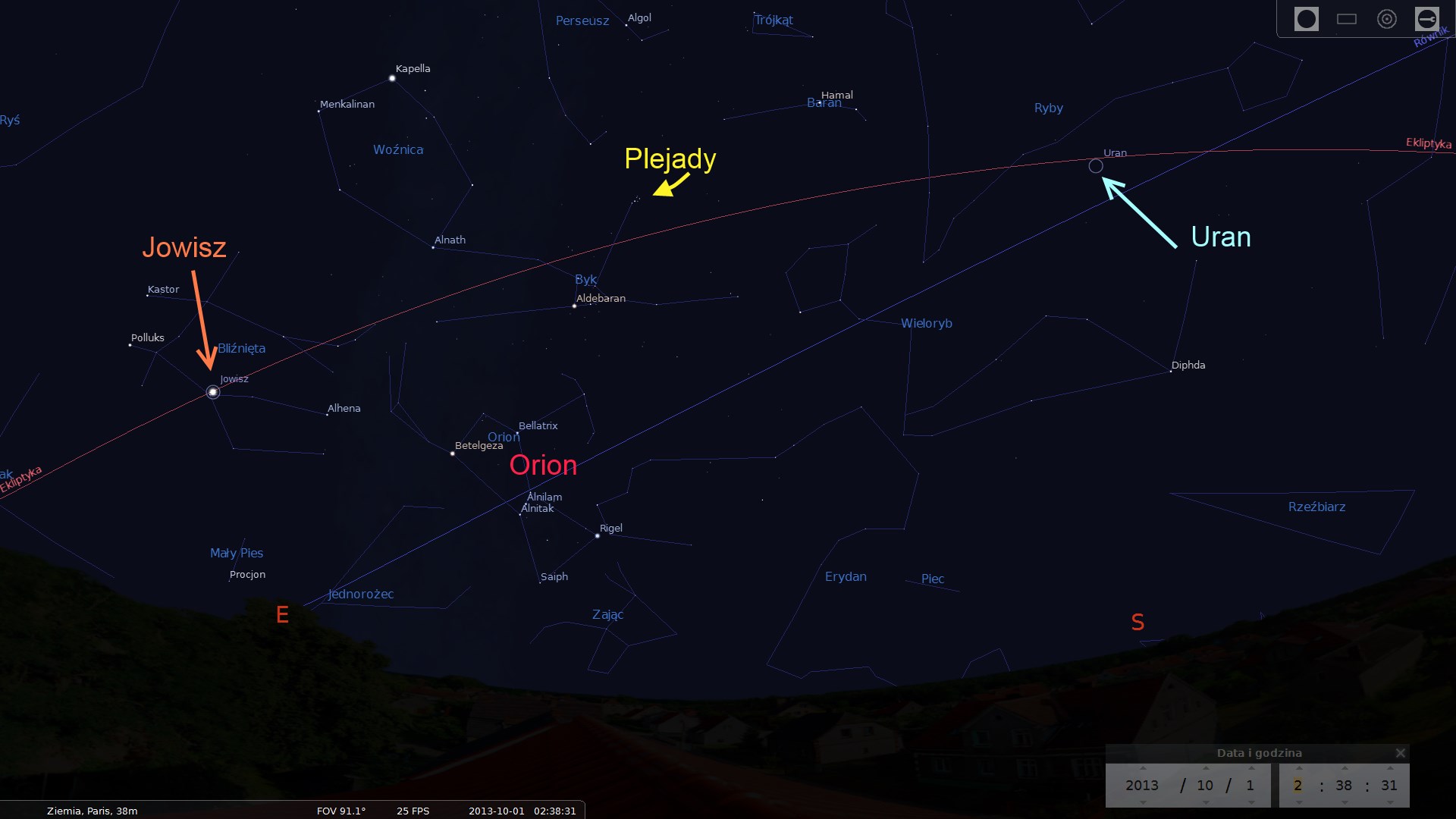 Dodał, że Urana najlepiej obserwować około północy, kiedy to świeci na granicy konstelacji Ryb i Wodnika, troszkę ponad 40 stopni nad południowym horyzontem. C"hoć da się go dojrzeć gołym okiem, do obserwacji najlepiej użyć lornetki. Warto także wyposażyć się w mapę nieba, na której dokładnie zaznaczono pozycję planety" - radził.