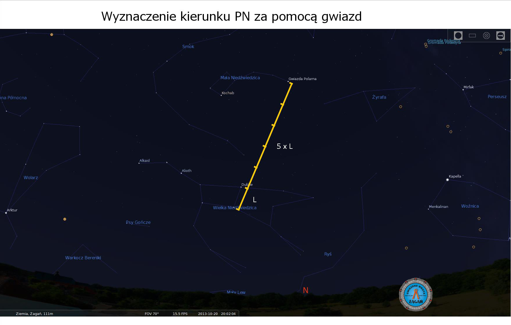 - Samodzielnie ćwicząc utrwalić wyznaczanie kierunku północy za pomocą gwiazdozbiorów jak na zajęciach