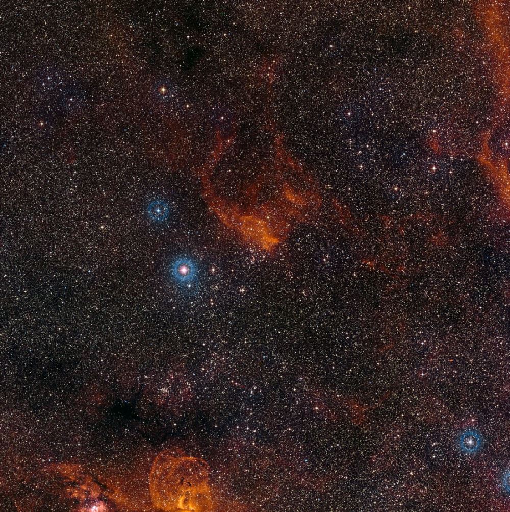 Astronomowie z ESO wykonali najlepsze jak dotąd zdjęcie interesujących obłoków wokół gromady gwiazd NGC 3572. Fotografia pokazuje w jaki sposób obłoki gazu i pyłu zostały ukształtowane w fantazyjne pęcherzyki, łuki i inne dziwne struktury, określane jako „trąby słoni”. Takiego ukształtowania dokonały wiatry gwiazdowe wiejące od zgrupowania młodych, gorących gwiazd. Najjaśniejsze z gwiazd gromady są znacznie masywniejsze od Słońca i skończą swoje życia w wybuchach supernowych.Większość gwiazd nie powstaje samotnie, ale w licznym gronie obiektów, które narodziły się mniej więcej w tym samym czasie z jednego obłoku gazu i pyłu. NGC 3572, w południowej konstelacji Kila, jest jedną z takich gromad. Zawiera wiele młodych, gorących, biało-niebieskich gwiazd, które świecą jasno i generują potężne wiatry gwiazdowe, które stopniowo rozpraszają gaz i pył z otoczenia. Świecące obłoki gazu i towarzysząca im gromada gwiazd są tematem nowego zdjęcia z instrumentu Wide Field Imager, pracującego na 2,2-metrowym teleskopie MPG/ESO w Obserwatorium ESO La Silla w Chile [1].