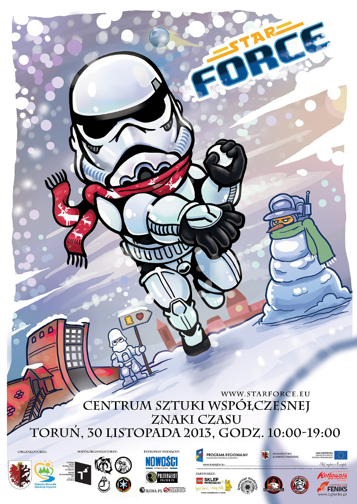 Gwiezdna Flota Rebelii wyląduje w ToruniuW sobotę, 30 listopada, toruńskie Centrum Sztuki Współczesnej zamieni się w…Centrum Galaktyki. Akademia Jedi wyszkoli nowych rekrutów, toczyć się będą walki na miecze świetlne, jednostki X-wingów zniszczą wrogie eskadry. Wojskami dowodzić będzie słynny, rebeliancki pilot – Biggs Darklighter. A to wszystko i o wiele więcej, w ramach V edycji największego zlotu fanów Gwiezdnych Wojen – StarForce 2013.
