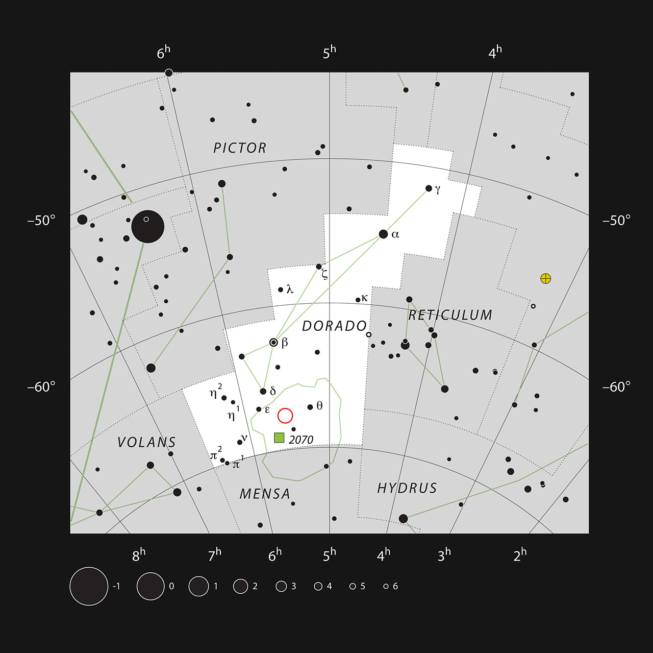 Gdy patrzymy na zdjęcie, trudno jest uświadomić sobie rozmiary tych obłoków – mają średnice po kilkaset lat świetlnych. Nie znajdują się w naszej galaktyce, ale daleko poza nią. Wielki Obłok Magellana jest ogromny, ale w porównaniu do naszej własnej galaktyki rozciąga się na bardzo skromne rozmiary, zaledwie 14 000 lat świetlnych – około dziesięć razy mniej niż Droga Mleczna.