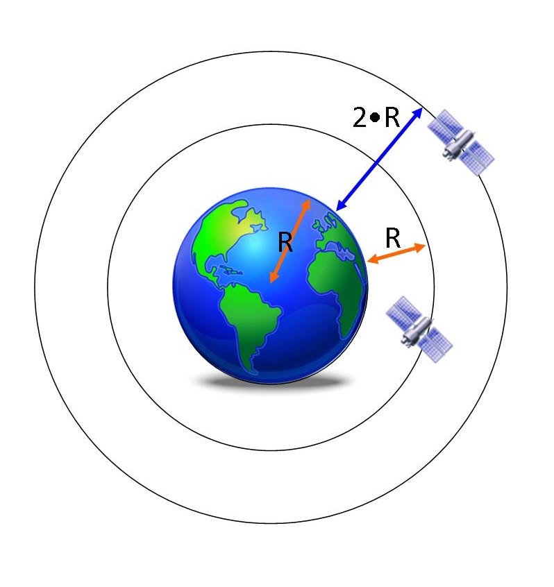 Wokół Ziemi krążą dwa satelity po orbitach jak na rysunku (R i 2R na d Ziemią) oblicz stosunek okresów obiegu tych satelitów czyli T