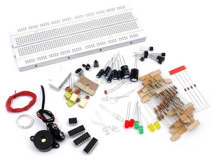 Zestaw praktycznego kursu elektroniki do samodzielnego montowania układów z pominięciem lutowaniaAby się o tym przekonać do zagadnień naszej pracy wdrożyliśmy elementy elektroniki. To kolejny obszar ludzkiej wiedzy niezwykle rozbudowany i konieczny poznania, by zrozumieć jak działa nasz świat i jakie są jego możliwości. Na początek rzeczy proste, ale praktyczne. Pomoże to też w nauce w szkole, gdy przyjdzie nam się zmierzyć z zagadnieniami z elektryczności. Świat półprzewodników i układów cyfrowych jest niezwykle kreatywny, a wielość zastosować różnych rozwiązań daje ogromne pole do popisu nam wszystkim.