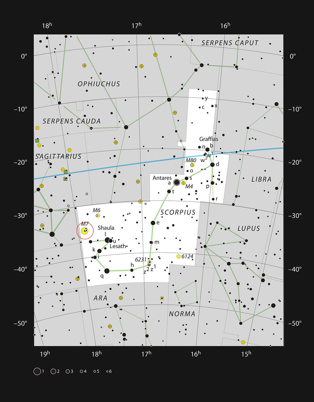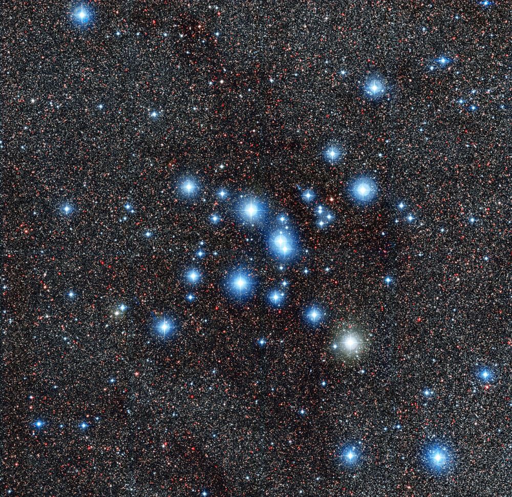 Nowe zdjęcie z Obserwatorium ESO La Silla w Chile pokazuje jasną gromadę gwiazd Messier 7. Można ją łatwo dostrzec gołym okiem w gwiazdozbiorze Skorpiona, jest jedną z najjaśniejszych gromad otwartych na niebie, co czyni ją ważnym obiektem badań astronomicznych.Messier 7, znana także jako NGC 6475, jest jasną gromadą około 100 gwiazd położona 800 lat świetlnych od Ziemi. Na nowym zdjęciu z instrumentu Wide Field Imager na 2,2-metrowym teleskopie MPG/ESO widoczna jest na bardzo bogatym tle setek tysięcy słabszych gwiazd w kierunku centrum Drogi Mlecznej.