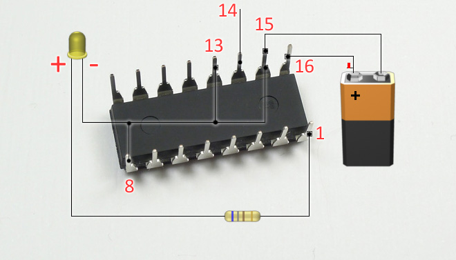 Schemat detektora kabli pod napięciem zmiennymGodzina w Sali pozwolił na pchnięcie prac przy planetarium, naprawienie zasilania tablicy Oriona oraz poznanie kolejnego urządzenia wykorzystywanego w elektronice – multimetru analogowego. Poznaliśmy też pewne właściwości baterii znanej wszystkim z życia codziennego oraz przetestowaliśmy nasz detektor fal elektromagnetycznych emitowanych przez przewody pod napięciem zmiennym. Posłużył do tego układ scalony HCF4017 na bazie którego zbudowaliśmy detektor – do tego dioda LED, bateria 9V oraz rezystor 220R. na kolejnych zajęciach zobaczymy na własnej skórze jak powstaje takie cacko. Urządzenie niezwykle praktyczne za jedyne 2,50zł.