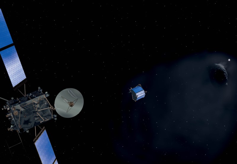 Philae opadający na jądro komety 67P / Credits - ESALądownik Philae znajdujący się na sondzie Rosetta został pomyślnie wyprowadzony ze stanu hibernacji.