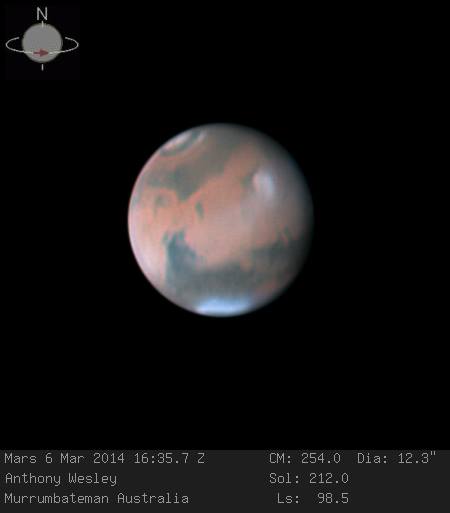 Nadchodzi czas Marsa w 2014r. Związane jest to z jego opozycją planety. Sama opozycja znacznie poprawia warunki badania Czerwonej Planety z powierzchni naszej Ziemi. Samego Marsa badamy jednak znacznie skuteczniej z jego powierzchni i z obity, na której krążą sztuczne satelity. Takie badania planety sięgają 1964 roku, czyli od 50 lat. Szmat czasu. Poczynając od Marinera 4, który wreszcie rozwiał wszelkie wątpliwości związane z kanałami na planecie, a kończąc na Curiosity, który z dumnie podniesioną przyłbicą zapatrzoną w kamery myszkuje po licznych jego zakamarkach w ślad za swoimi słynnymi poprzednikami, niby „stąpamy” po niezmierzonych czerwonych pustyniach pełnych kamieni i regolitu w nadziei znalezienia śladów życia – choćby tego zamierzchłego. W takim kontekście odbyło się kolejne spotkanie członków Sekcji.