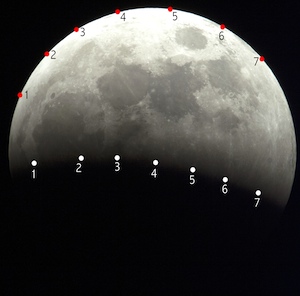 w godzinach 7:50-11:40 czasu polskiego (5:50 UT – 9:40 UT, 15 kwietnia) co minutę będą nadsyłane zdjęcia Księżyca przechodzącego kolejne fazy zaćmienia, od fazy częściowej do całkowitej.