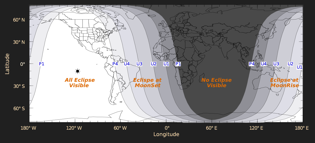 Całe zaćmienie trwa 3 godziny i 34 minuty, zaś faza całkowitego zaćmienia 1 godzina i 17 minut. Relacja na żywo, w trakcie dwóch połączeń, potrwa w sumie około 55 minut: