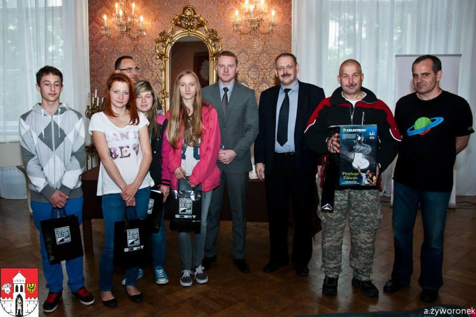 Rajd biegł przez miasto z zmienna pogodę. Przelotne deszczyki dodatkowo podniosły emocje. Za to wszystko każdy dostał pamiątkę a trzy pierwsze miejsca liczne nagrody. Te tym razem dość niezwykłe. To już jakby nasza tradycja, że nie mogą być one takie sobie. Dlatego zawsze przygotowujemy je pieczołowicie, by spełniły pokładane w nich nadzieje. W tym roku każdy uczestnik z trzech drużyn, które zajęły pierwsze trzy miejsca otrzymał książkę (jeszcze ciepłą) Kosmos – Tomasza Rożka, lornetkę by odkrywać tajemnice przyrody i kosmosu, mapę nieba oraz była tez nagroda specjalna dla szkół – roczna prenumerata Uranii Postępów Astronomii. To czasopismo przyda się swoją zawartością uczniom, nauczycielom oraz pasjonatom nauki. Laureaci konkursu otrzymali teleskopy i świetne zestawy odkrywcy. Wśród nagrodzonych szkól były: