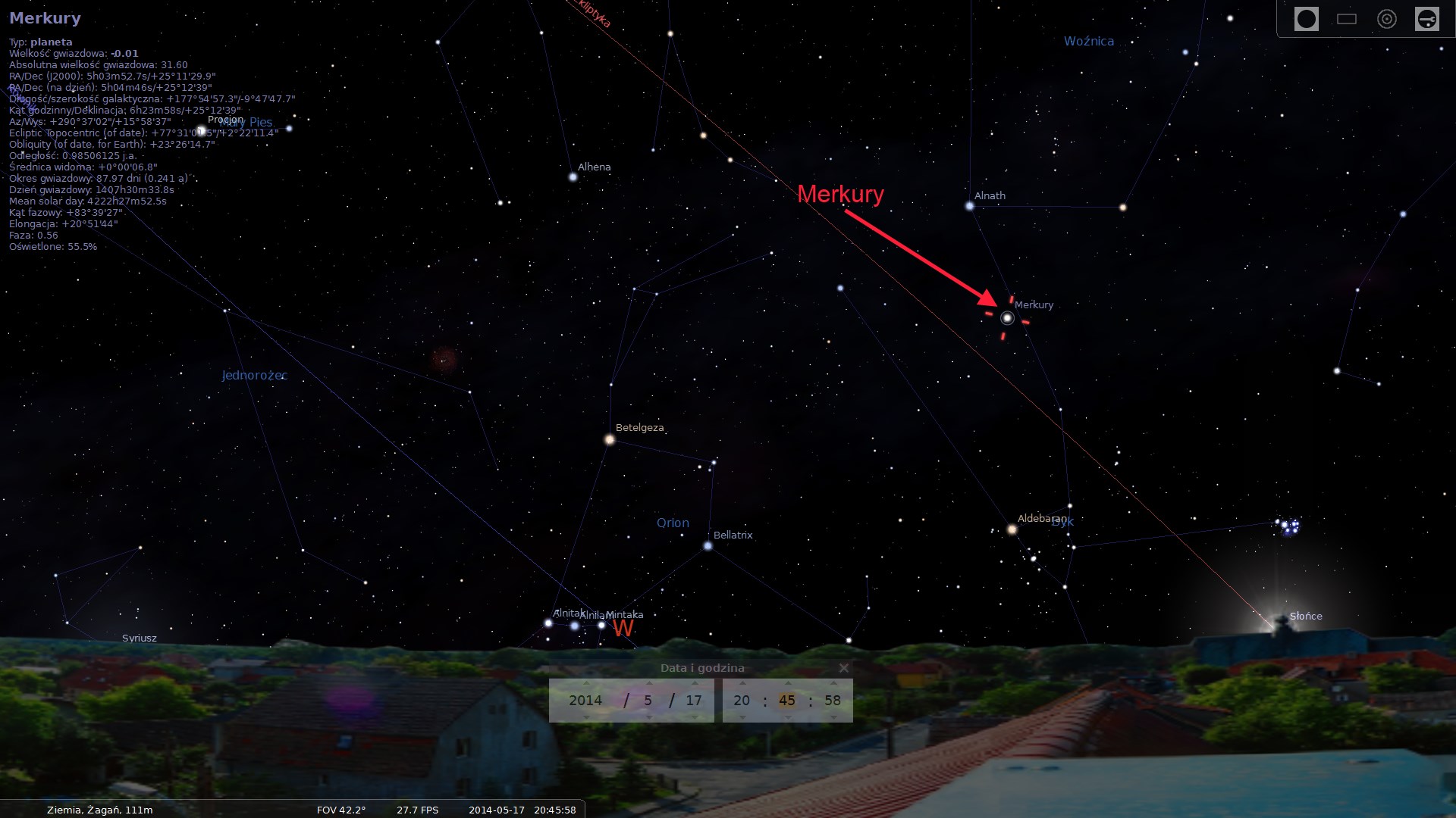 Dodał, że bardzo dobrym okresem do obserwacji Merkurego, w tym roku, są okolice 21 maja, kiedy mamy sezon na wieczorne obserwacje tej planety. Lepszych warunków wieczornych w 2014 roku już nie będzie, jest to więc ostatnia okazja, aby dojrzeć Merkurego bez zrywania się przed świtem.