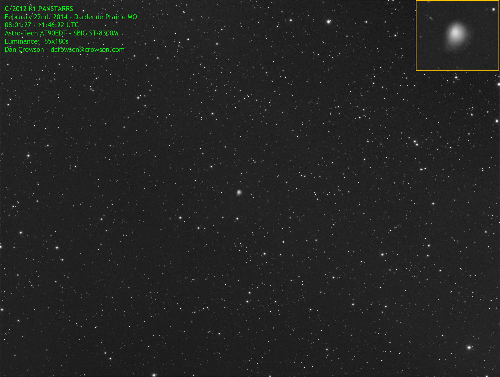 Widoczność na naszym niebie komety C/2012 K1 (PanSTARRS)Jak przypomniał, kometa C/2012 K1 (PanSTARRS) została odkryta 19 maja 2012 roku jako obiekt o jasności 19,7 magnitudo przez 1,8-metrowy teleskop na Hawajach. Po obliczeniu jej orbity okazało się, że najbliżej Słońca przejdzie ona w sierpniu 2014 roku, a przed tą datą będzie widoczna przez niewielkie lornetki.
