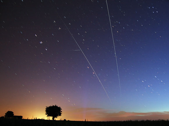 Przeloty ISS można fotografować nieruchomym aparatem. Na zdjęciu powyżej na jednej klatce znalazły się dwa przeloty. Stacja okrąża bowiem Ziemię w ciągu około 90 minut.