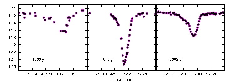 EE Cep to nietypowa gwiazda zaćmieniowa, w której zaćmienia powtarzają się co 5,6 roku. Ich długość i głębokość zmienia się dość wyraźnie z cyklu na cykl. Najkrótsze potrafią trwać około miesiąca, a dłuższe ponad dwa miesiące. Ich głębokość waha się od 0,6 do około 2 wielkości gwiazdowych.