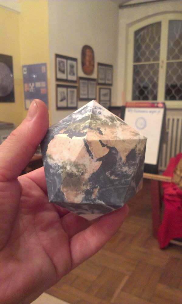 My w ramach pracy stworzyliśmy na początek Ziemię i jej towarzysza Księżyc. Tak, żeby nie było jej smutno. Modele powstały z siatek przygotowanych i dostępnych w sieci – NEXUS. Siatkę należy wydrukować na drukarce kolorowej, lub wybrać czysta siatkę i samemu namalować na jej powierzchni struktury planety czy kratery Księżyca. Siatki dostępne są w równych skalach złożoności i trudności wykonania. My zaczęliśmy od najprostszych. Zabawa jest przednia.