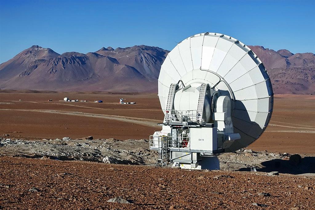 Odległa antena sieci ALMA. W tle widać inną, bardziej centralną antenę należącą do sieci. Źródło: ALMA (ESO/NAOJ/NRAO)/E. Moreno. Wielka sieć radioteleskopów ALMA w Chile dokonała testowych obserwacji w nowej, znacznie szerszej konfiguracji anten. O sukcesie całej operacji poinformowało Europejskie Obserwatorium Południowe (ESO), które reprezentuje Europę w tym międzynarodowym projekcie astronomicznym.