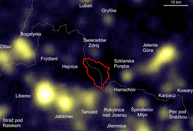 Mapa zaświetlenia nieba nocnego w rejonach Izerskiego Parku Ciemnego NiebaPrawie 2 tys. gwiazd można zobaczyć w Izerskim Parku Ciemnego Nieba, znajdującym się w Sudetach Zachodnich. W listopadzie placówka, przybliżająca problem zanieczyszczenia światłem i zabiegająca o zachowanie ciemności nocnego nieba, świętuje piątą rocznicę powstania.