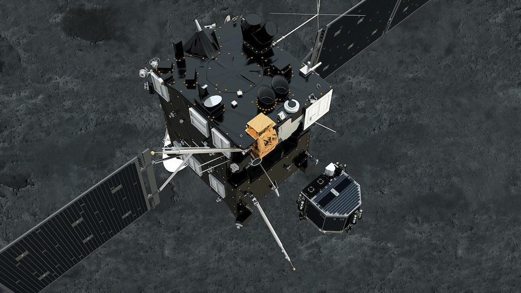 Separacja lądownika Philae od sondy Rosetta. Źródło: ESAKilka minut po godz. 10.00 w środę Europejska Agencja Kosmiczna uzyskała potwierdzenie, że lądownik Philae udanie odłączył się od sondy Rosetta. Teraz przez kilka godzin potrwa podejście do komety 67P/Churyumov–Gerasimenko. Będzie to pierwsze w historii łagodne lądowanie na komecie.