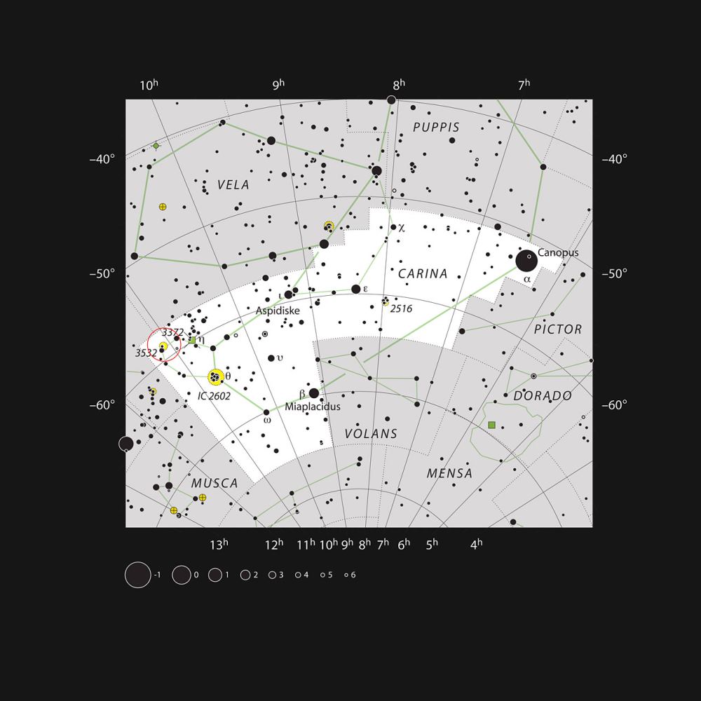Niniejsze zdjęcie NGC 3532 zostało wykonane w lutym 2013 r. instrumentem Wide Field Imager, pracującym w należącym do ESO Obserwatorium La Silla.
