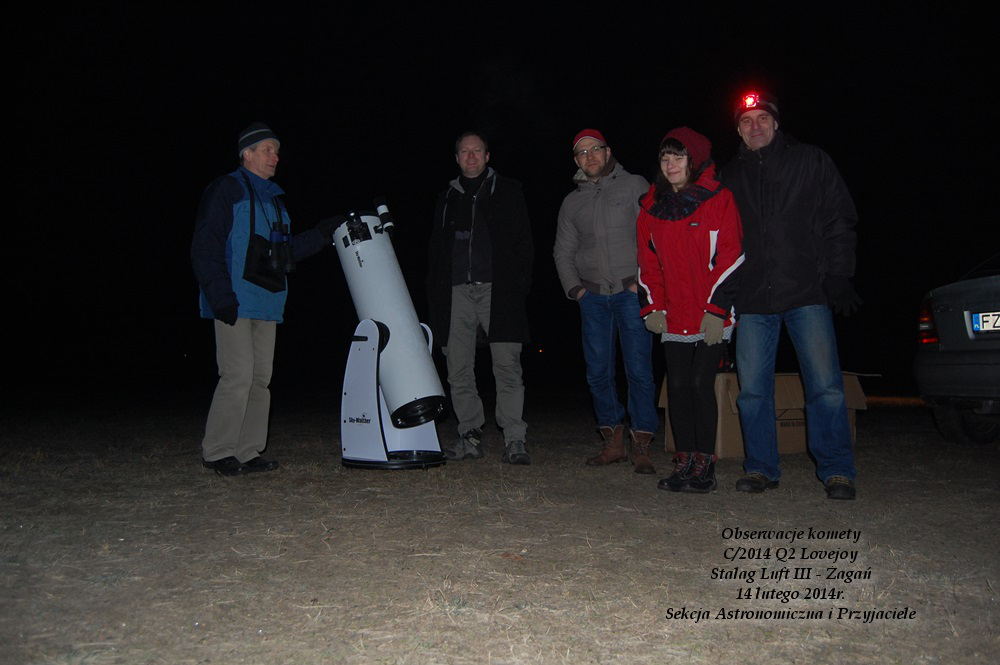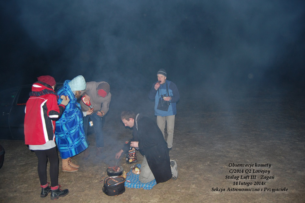 Aparat sam ans sfotografował - Walentynkowe spotkanie pod gwiazdami - obserwacje komety C/2014 Loejoy Q2Nie był to dzień jak każdy. Nie była to też sobota jak każda inna. Niebo czyste jak … bez chmur. Zapowiadał się lekki przymrozek. Wiadomo co będziemy robić na zajęciach. A do tego czeka nas spotkanie z dawno niewidzianym kolegą i przyjacielem Sekcji. Na spotkanie przyjeżdża Damian i zapraszamy go na obserwacje. Na miejsce zajęć wybieramy nasze wymarzone miejsce na obserwatorium astronomiczne – Stalag (żaganianie wiedzą gdzie to jest).