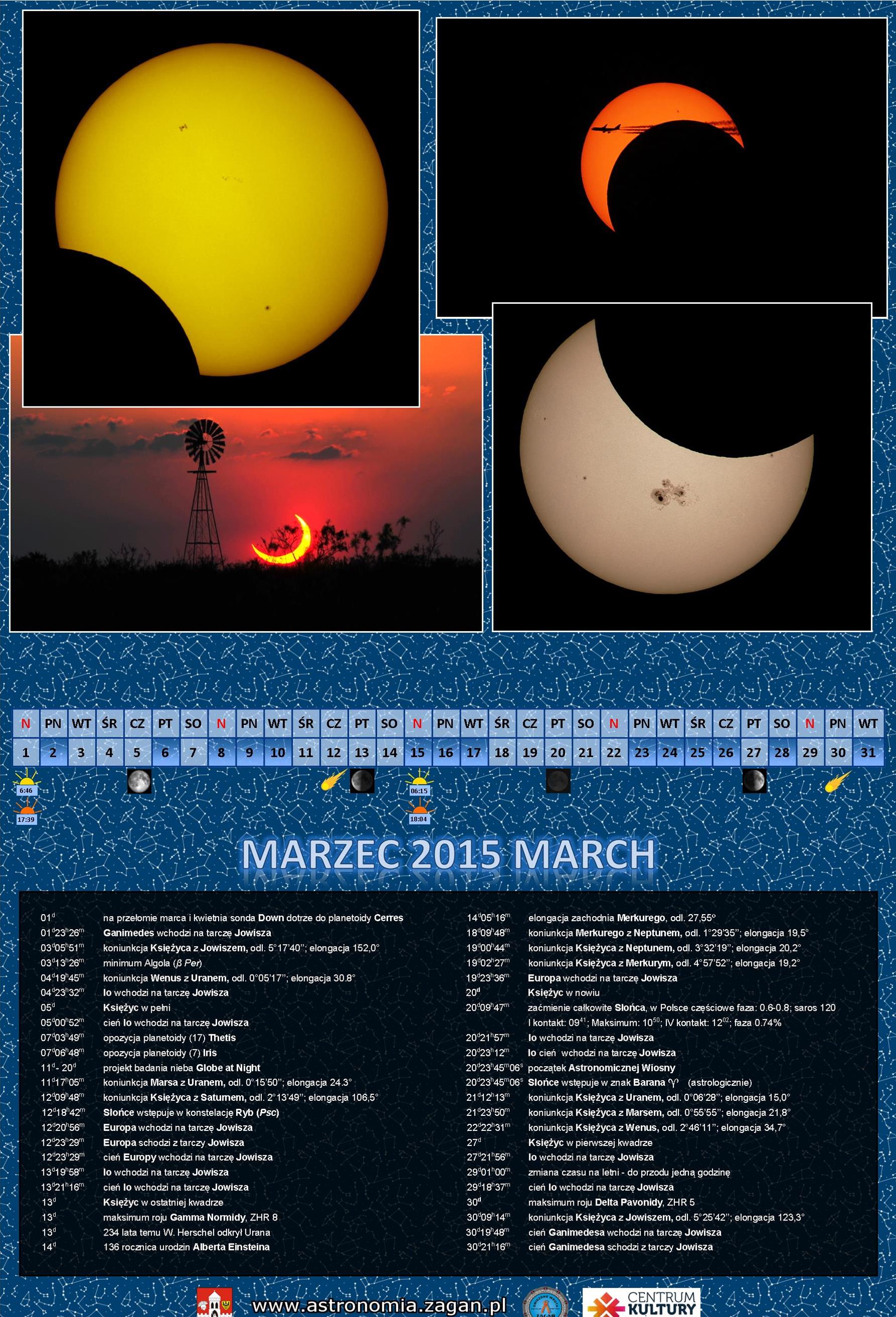 | 20d09h47m | zaćmienie całkowite Słońca, w Polsce częściowe faza: 0.6-0.8; saros 120