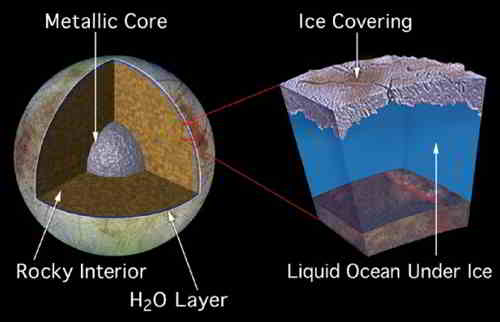 Europa jest specyficznym tworem w Układzie Słonecznym. Gładka pokrywa lodowa wzbudza wiele emocji. Naukowcy wciąż nie są zgodni, co do jej grubości, zaś brak bruzd i kraterów na jej powierzchni jest co najmniej zastanawiający. Występowanie wody pod grubą skorupą lodu jest potencjalnym wyjaśnieniem takiego stanu rzeczy. Ta teoria została nieco wzmocniona w 1995 r., w trakcie przelotu Galileo, zmierzającego do Jowisza. Sonda odnotowała niewyjaśnione zakłócenia pola magnetycznego gazowego giganta w okolicach tego satelity. Ich przyczyną mogła być płynna substancja przewodząca prąd znajdująca się pod powierzchnią Europy. Biorąc pod uwagę, że Europa pokryta jest lodem, jest wielce prawdopodobne, że tą tajemniczą substancją jest właśnie woda.