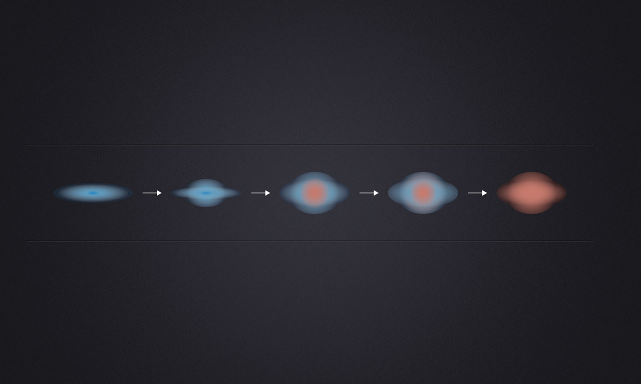 Masywne, spokojne galaktyki eliptyczne, występujące powszechnie we Współczesnym Wszechświecie, są źródłem sporej astrofizycznej zagadki – zatrzymania się gwałtownego tempa procesów powstawania gwiazd, Te gigantyczne galaktyki, zwane często także sferoidami z powodu swojego kształtu, zazwyczaj zawierają gwiazdy upakowane dziesięciokrotnie gęściej niż centralne obszary naszej rodzimej Drogi Mlecznej i mają masy dziesięć razy większe.