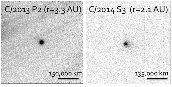 Niska aktywność C/2013 P2 Pan-STARRS i C/2014 S3 Pan-STARRS / Credits – Gemini North i CFHTJest prawdopodobne, że we wczesnym Układzie Słonecznym duża ilość materii powstała blisko Słońca została “wyrzucona” na dalsze rejony. Dużą rolę odegrał w tym Jowisz, m.in. pozbawiając Pas Planetoid około 99,9% swojej początkowej masy. Jest więc możliwe, że C/2014 S3 Pan-STARRS jest świadkiem takich procesów z wczesnego Układu Słonecznego. Z kolei C/2013 P2 Pan-STARRS może pochodzić z Obłoku Oorta i dopiero co odbywać swoją pierwszą podróż do wewnętrznego Układu Słonecznego. Niską aktywność tej komety może sugerować, że jej powierzchnia po 4,6 miliarda ekspozycji na promieniowanie kosmiczne stworzyła (prawie) szczelną skorupę bez żadnych lotnych związków.