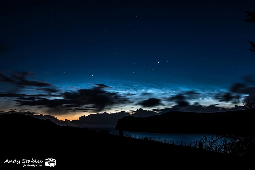 Obłoki Srebrzyste 2015. Fotkę wykonał Andy Stables w Szkocji.Czerwiec to nie tylko cieplejsze dni i noce, ale i czas na widowiskowe zjawiska pogodowe w postaci srebrzystych obłoków. czas ich obserwacji właśnie się rozpoczął. W czerwcu nadal mamy okazje do obserwacji największych planet US widocznych na naszym niebie oraz pięknej bogini Wenus oraz Merkurego.