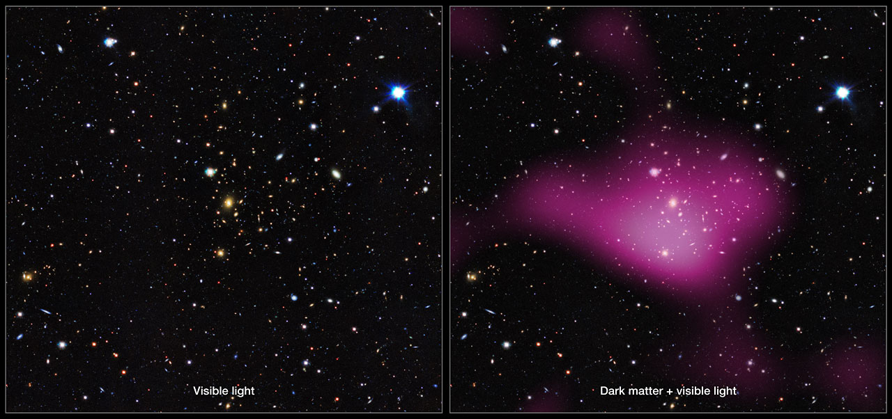 Najlepszym sposobem na sprawdzenie gdzie znajduje się ciemna materia jest soczewkowanie grawitacyjne — zaburzenie podstawowej grawitacji Wszechświata, które wpływa na światło przychodzące od odległych galaktyk położonych daleko za ciemną materią. Analizując ten efekt można wykonać mapy miejsc, w których grawitacja jest najsilniejsza, a zatem w których znajduje się materia, w tym ciemna materia.