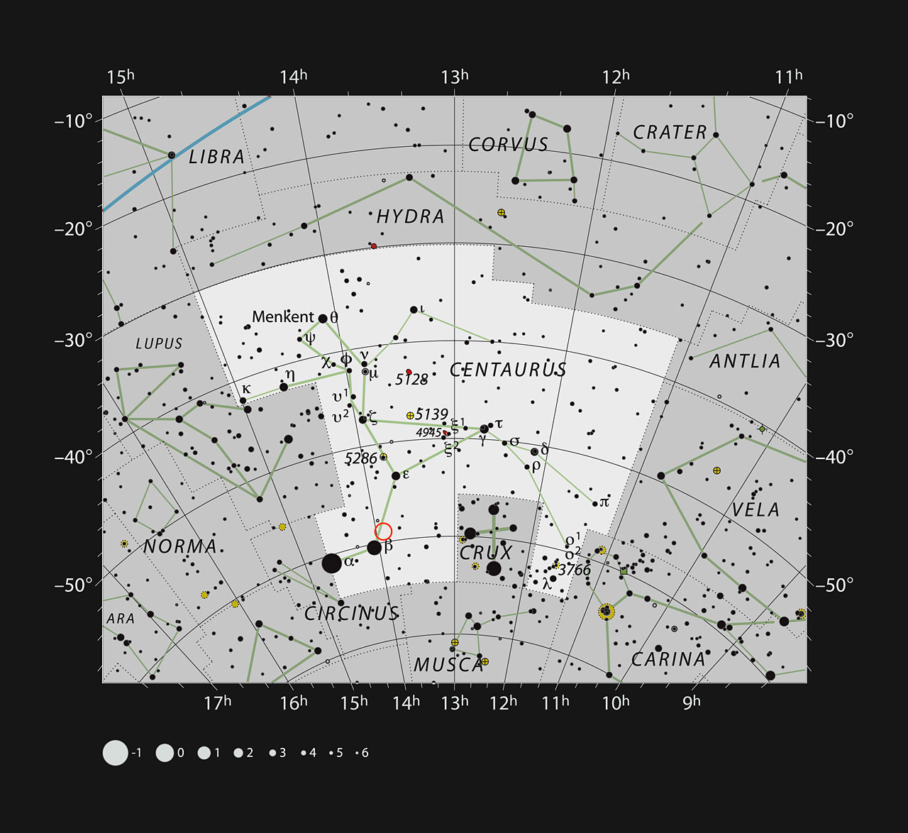 Zespół, którym kierował Luca Izzo (Sapienza University of Rome oraz ICRANet, Pescara, Włochy) wykorzystał instrument FEROS na 2,2-metrowym teleskopie w Obserwatorium La Silla, a także spektrograf PUCHEROS na 0,5 metrowych teleskopie ESO w Observatory of the Pontificia Universidad Catolica de Chile w Santa Martina koło Santiago, do zbadania nowej Nova Centauri 2013 (V1369 Centauri). Gwiazda ta wybuchła na niebie południowym blisko jasnej gwiazdy Beta Centauri w grudniu 2013 r. i była najjaśniejszą nową w bieżącym stuleciu— łatwo widoczną nieuzbrojonym okiem [3].