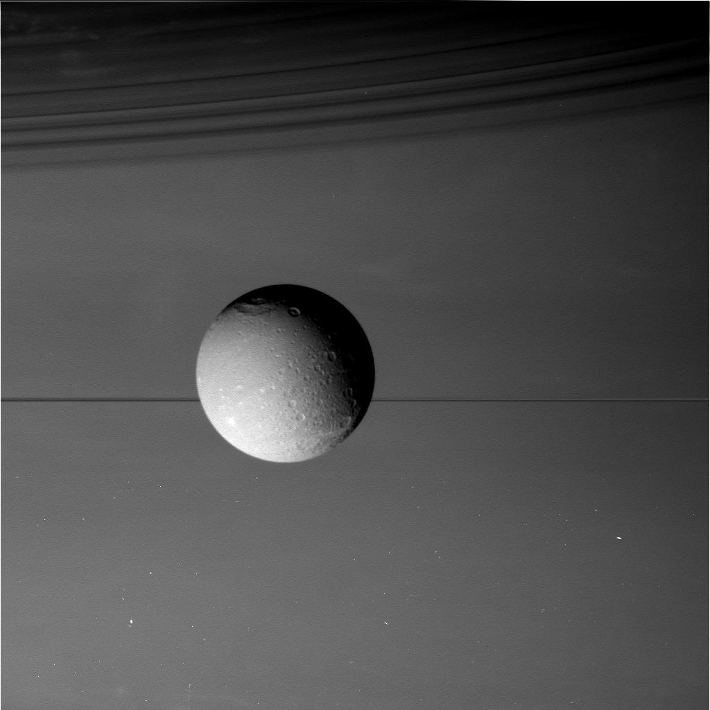 “Surowe” szerokokątne zdjęcie Dione wykonane 17 sierpnia przez sondę Cassini podczas przelotu. W tle Saturn. / Credits – NASA/JPL-Caltech/Space Science InstitutePierwsze zdjęcia z przelotu Cassini obok Dione zaczęły “spływać” na Ziemię 18 sierpnia. Maksymalna rozdzielczość niektórych z uzyskanych zdjęć ma wynieść do kilku metrów – w szczególności dla obszaru północnego bieguna Dione.