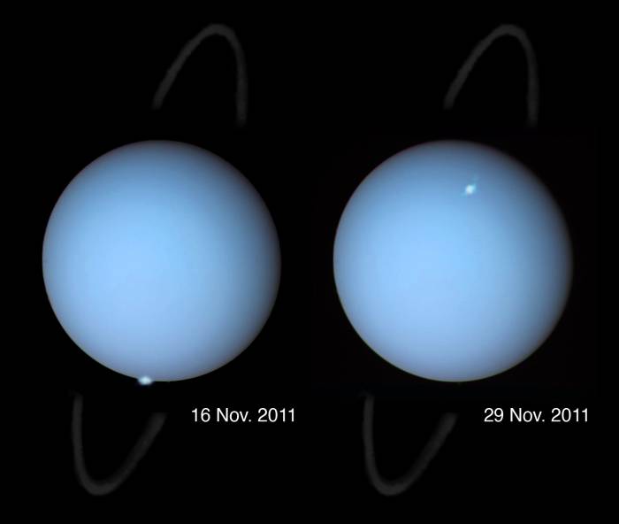 Zdjęcia zórz na Uranie wykonane przez Kosmiczny Teleskop Hubble w 2011 roku / Credits: HST, Laurent Lamy, AGUJednym z celów przeprowadzanego studium będzie zaprojektowanie wspólnej platformy dla sond, które mogłyby powstać przy koszcie 2 mld dolarów za jeden egzemplarz. Będzie to w tym samym czasie pierwszy administracyjny krok na wieloletniej drodze wypełnionej analizami technicznymi i naukowymi, oraz planowaniem budżetu misji.