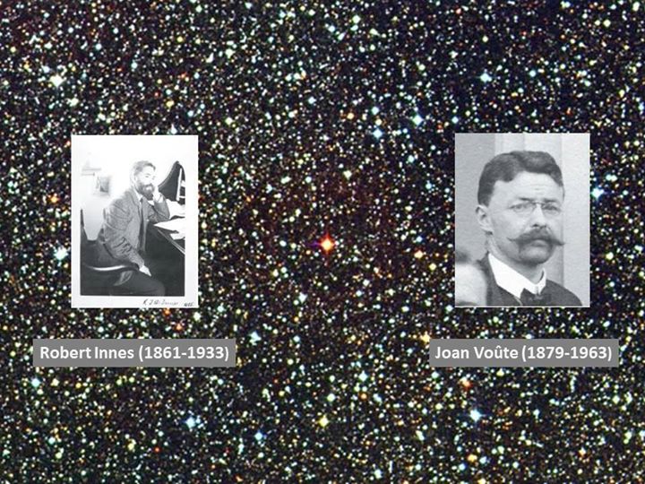 3 września 1917 r. swoje wyniki opublikował Innes. Jego paralaksa była większa: 0.82", co oznaczało, że mamy do czynienia z gwiazdą najbliższą Układowi Słonecznemu. Taką też nazwę, Proxima (łac. najbliższa) Centauri, dla tej gwiazdy Innes zaproponował. Chociaż współczesne pomiary paralaksy Proximy (0.76887") są bliższe wynikowi Voûte’a , to jednak Innes miał rację – paralaksa Alfy Centauri jest mniejsza (0.74723").