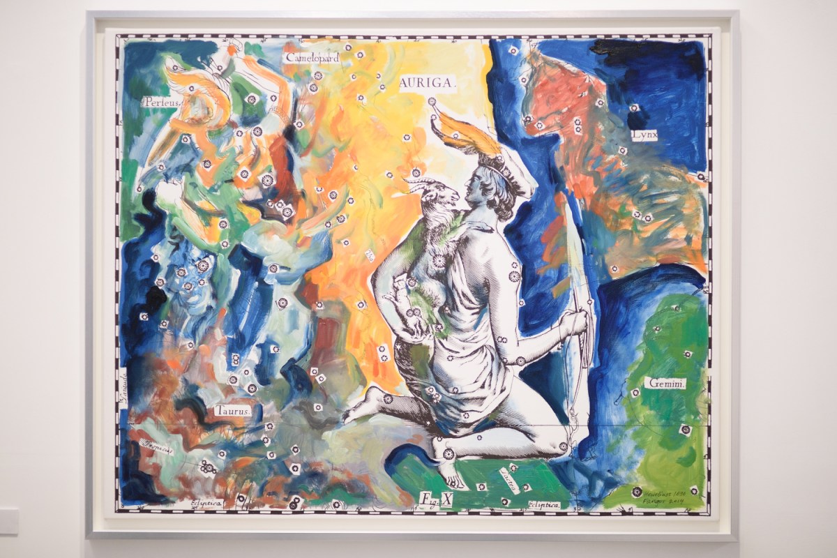 "Charakteryzuje się właściwą artyście swobodą w posługiwaniu się kolorem i odnoszeniem barw do rysunku. Fangor nie próbuje zamazać dzieła Heweliusza, nie chce go zawłaszczyć, zostawia go wyraźnie widocznym, a wszystkie napisy, tytuły konstelacji zostawia bez podmalowywania" - ocenił.