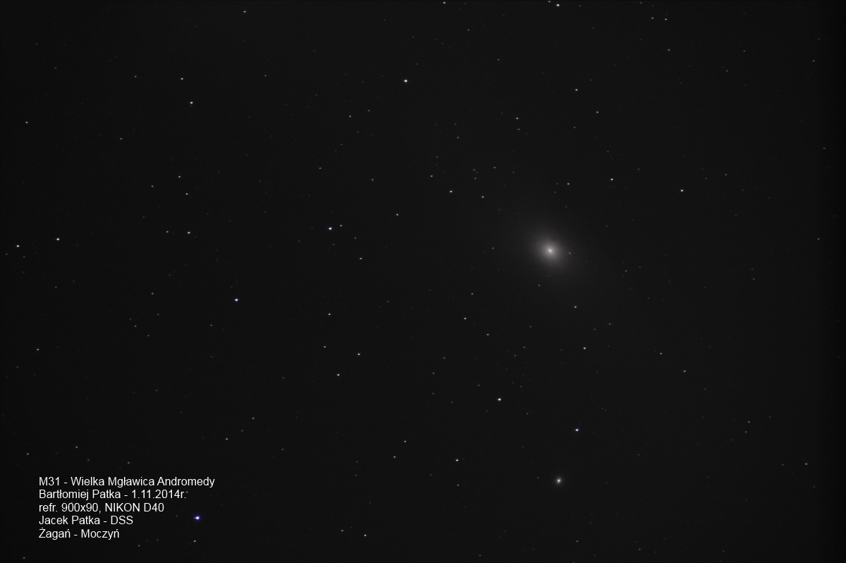 Słynna M31 Andromeda sfotografowana przez Bartka w roku 2014W dniu 24 X 2015 roku odbyło się kolejne spotkanie miłośników astronomii w ramach zajęć sekcji astronomicznej. Nietuzinkowość działań sekcji przyciągnęła kolejnego pasjonata nieba do naszych szeregów. Witamy u nas Pana Zenona. Jako, że jesienna pogoda daje nam się nieastronomicznie we znaki czas naszego spotkania upłyną w naukowych rozmyślaniach i wspomnieniach z czasów lotów na księżyc. swoje doświadczenia przybliżył nam nasz nowy kolega Zenon. To niezwykłe doświadczenie spotkać się dzisiaj z kimś, kto osobiście przeżył te chwile i dzisiaj potrafi do nich powrócić. W tzw. Naszej branży nadążanie za aktualnym stanem wiedzy to poważne wyzwanie dla miłośnika nauki. W większości przypadków nie mamy bowiem dostępu do najświeższych opracowań naukowych a i nasze możliwości weryfikacji sensacji naukowych tez jest dość ograniczone. Znaleźliśmy jednak pewne rozwiązanie naszych problemów. naprzeciw takim potrzebom wyszedł „Copernicus Center for Interdisciplinary Studies” - Link. Stworzył on specjalną platformę do uczestnictwa w niecodziennych kursach prowadzonych przez wysokiej klasy specjalistów – w tym np. prof. Michała Hellera czy Rogera Penrose . W zakresie naszych zainteresowań znalazły się wykłady z Podstaw Kosmologii oraz wykład gościnny R. Penrose. Wykłady prowadzone są na poziomie umożliwiającym uczestnictwo słuchaczy ze średnim wykształceniem i otwartym umysłem. Dzięki takim zajęciom można ogarnąć samemu szeroki obszar wiedzy jakim gospodaruje kosmologia. Poznajemy w czasie tych zajęć również pewne zagadnienia historyczne co daje wiedze o tym jak ludzie dochodzili do obecnego stanu wiedzy. Świadczy toteż o tym, że nie od razu Kraków zbudowano. Tak samo i słuchacz musi uzbroić się w cierpliwość i sumiennie realizować kurs przez 6 tygodni.