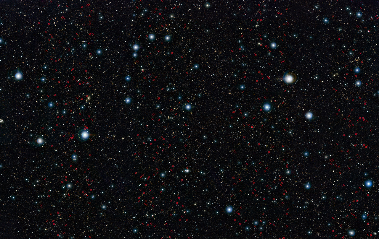 Zespół astronomów, którym kierowała Karina Caputi z Kapteyn Astronomical Institute na University of Groningen, odkrył wiele odległych galaktyk, które umykały wcześniejszym badaniom. Naukowcy wykorzystali zdjęcia z przeglądu UltraVISTA, jednego z sześciu projektów wykorzystujących teleskop VISTA do przeglądów nieba w zakresie bliskiej podczerwieni. Dokonali spisu słabych galaktyk z okresu gdy Wszechświat miał od 0,75 do 2,1 miliarda lat.