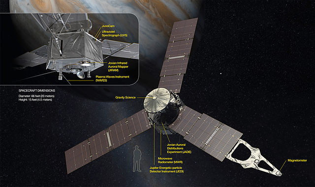 Rozmieszczenie instrumentów naukowych sondy Juno. Źródło: WikiPediaSonda Juno pobiła rekord Rosetty i jest teraz najodleglejszą sondą zasilaną energią słoneczną.