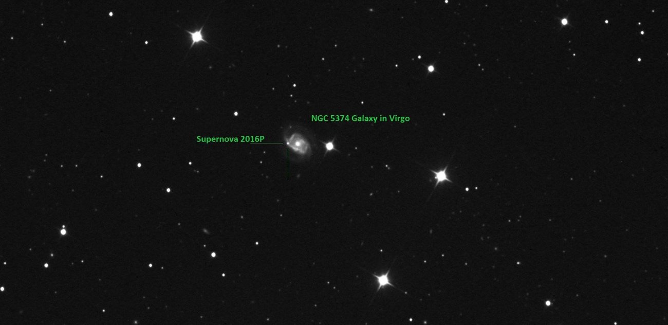 Supernowa 2016P / Credits - Ratinga, Michał Żołnowski, Grzegorz DuszanowiczPolski zespół astronomów odkrył supernową w galaktyce NGC 5374.