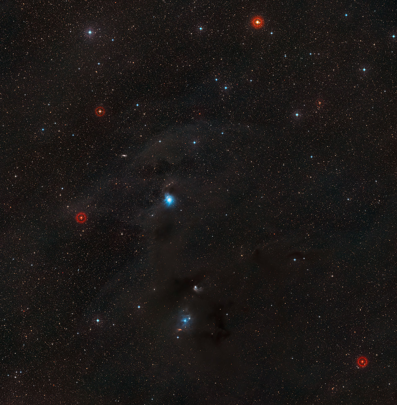 Na zdjęciu z Obserwatorium La Silla w Chile, nowo utworzona gwiazda rozświetla otaczające ją kosmiczne obłoki. Cząstki pyłu w olbrzymim obłoku wokół gwiazdy HD 97300 rozmywają jej światło, niczym wiązki światła samochodowych reflektorów we mgle, tworząc mgławicę refleksyjną IC 2361. Chociaż HD 97300 znajduje się aktualnie w świetle reflektorów, mnóstwo pyłu powoduje, że ciężko przeoczyć oznaki narodzin kolejnych wchodzących na scenę przyszłych gwiazd.Świecący obszar na nowym zdjęciu z 2,2-metrowego teleskopu MPG/ESO jest mgławicą refleksyjną znaną jako IC 2631. Obiekty tego typu to obłoki kosmicznego pyłu, który odbija światlo od pobliskiej gwiazdy, tworząc oszałamiający pokaz, taki jak uchwycony na zdjęciu. IC 2361 jest najjaśniejszą mgławicą w Kompleksie Kameleona, rozległym obszarze obłoków gazu i pyłu, które skrywają liczne nowo narodzone i ciągle formujące się gwiazdy. Kompleks znajduje się w odległości około 500 lat świetlnych w kierunku południowego gwiazdozbioru Kameleona.