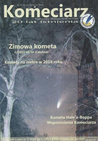 „Komeciarz” nr 48. Źródło: SOK PTMA. Jedno z nielicznych na świecie czasopism poświęconych wyłącznie kometom świętuje 20-lecie istnienia. „Komeciarz” jest wydawany przez Sekcję Obserwatorów Komet Polskiego Towarzystwa Miłośników Astronomii (SOK PTMA). Z okazji jubileuszu ukazał się specjalny numer czasopisma.