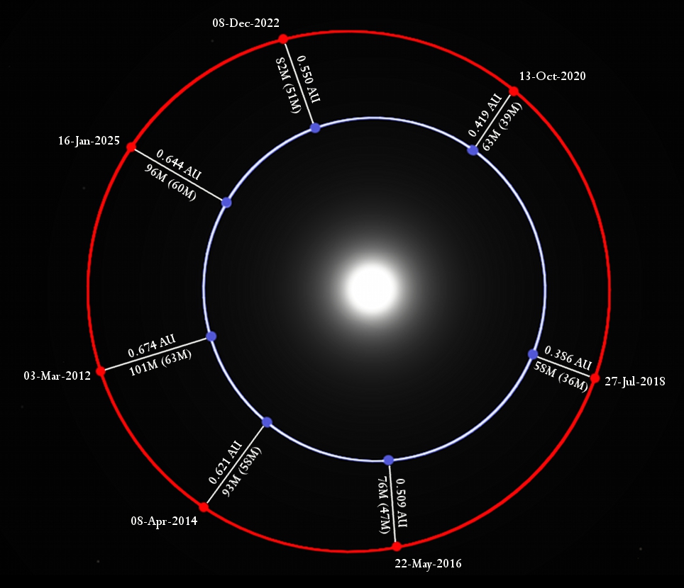 Podczas opozycji Marsa są najlepsze warunki do jego obserwacji. Planeta znajduje się wtedy najbliżej Ziemi, jest widoczna przez całą noc i świeci bardzo jasno. Tarcza planety ma wtedy też największe kątowe rozmiary na niebie, dzięki czemu przy pomocy amatorskich teleskopów łatwiej dostrzec pewne struktury na jej powierzchni, np. czapy polarne. Opozycje Marsa występują co okres nieco ponad dwóch lat, następna będzie w lipcu 2018 roku.