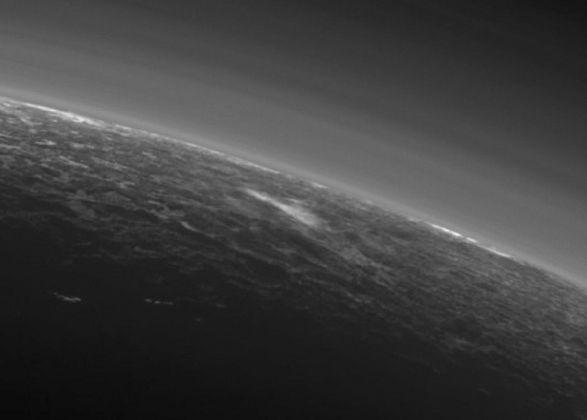 Na jednym ze zdjęć NH, wykonanym w kierunku Plutona zasłaniającego Słońce. Tylko na tym zdjęciu widać jasny twór nisko nad powierzchnią, który może być chmurą. Wstępne modele atmosferyczne sugerują, że chmury metanu mogą czasami pojawiać się nad Plutonem. Wcześniej wykryto już ślady “metanowego śniegu” na tej planecie karłowatej.