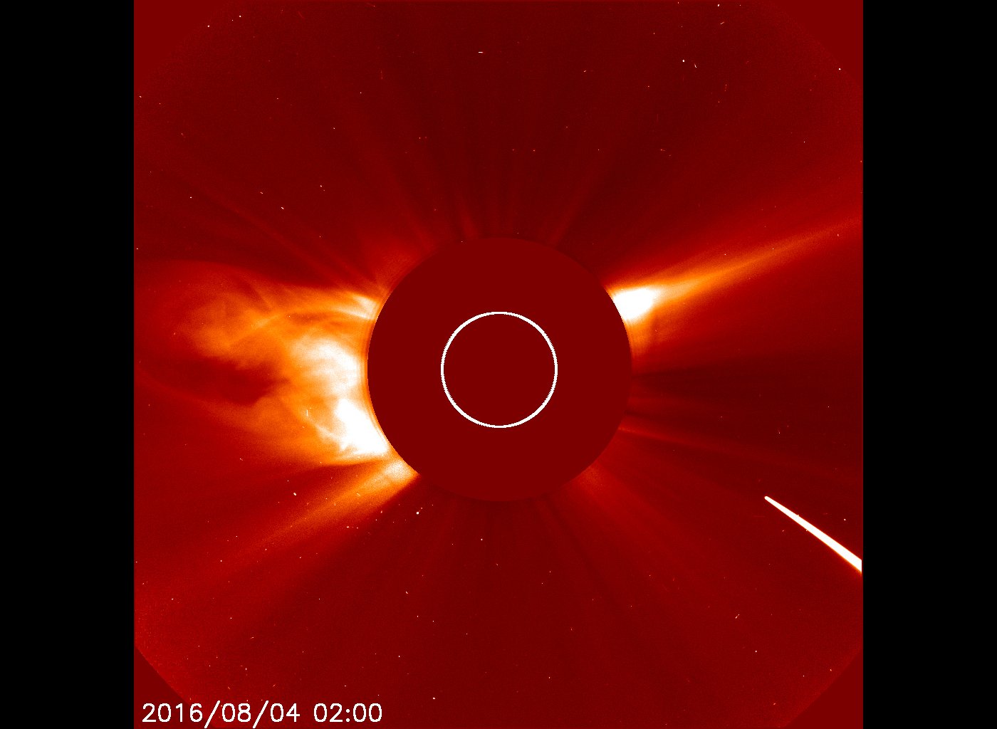 Jasna kometa z początku sierpnia 2016 obserwowana przez sondę SOHO / Credits – NASA, ESA, SOHO