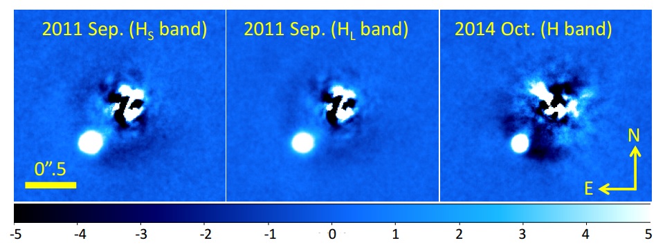 Obserwacje HII 3441B za pomocą teleskopu Subaru / Credits – Konishi et al., 2016.W wyniku obserwacji udało się odkryć brązowego karła odległego od HII 3441 o 66 jednostek astronomicznych. Obiekt otrzymał oznaczenie HII 3441B. Jego masę określono na 68 mas Jowisza, a temperaturę powierzchniową na 2700 K. HII 3441B został sklasyfikowany jako brązowy karzeł typu M7. Co ciekawe, aktualnie naukowcy uważają, że masa ok. 72 mas Jowisza to „granica” pomiędzy gwiazdą a obiektem niegwiazdowym, rozumiana jako minimalna masa pozwalająca na fuzję wodoru. HII 3441B wydaje się być blisko tej „granicy” i może być dobrym celem do dalszych obserwacji w celu lepszego jej poznania i określenia.